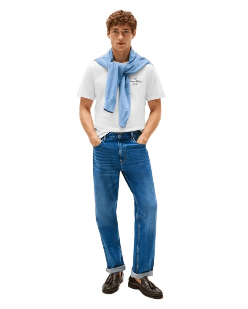 T-shirt col rond Homme OUTLINE FLAG SCRIPT Blanc TOMMY HILFIGER - Ref MW0MW39360-YBR