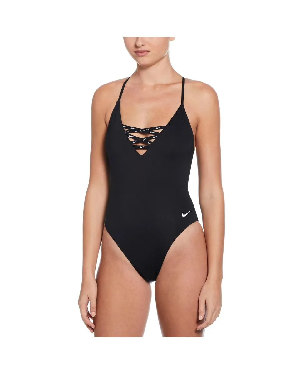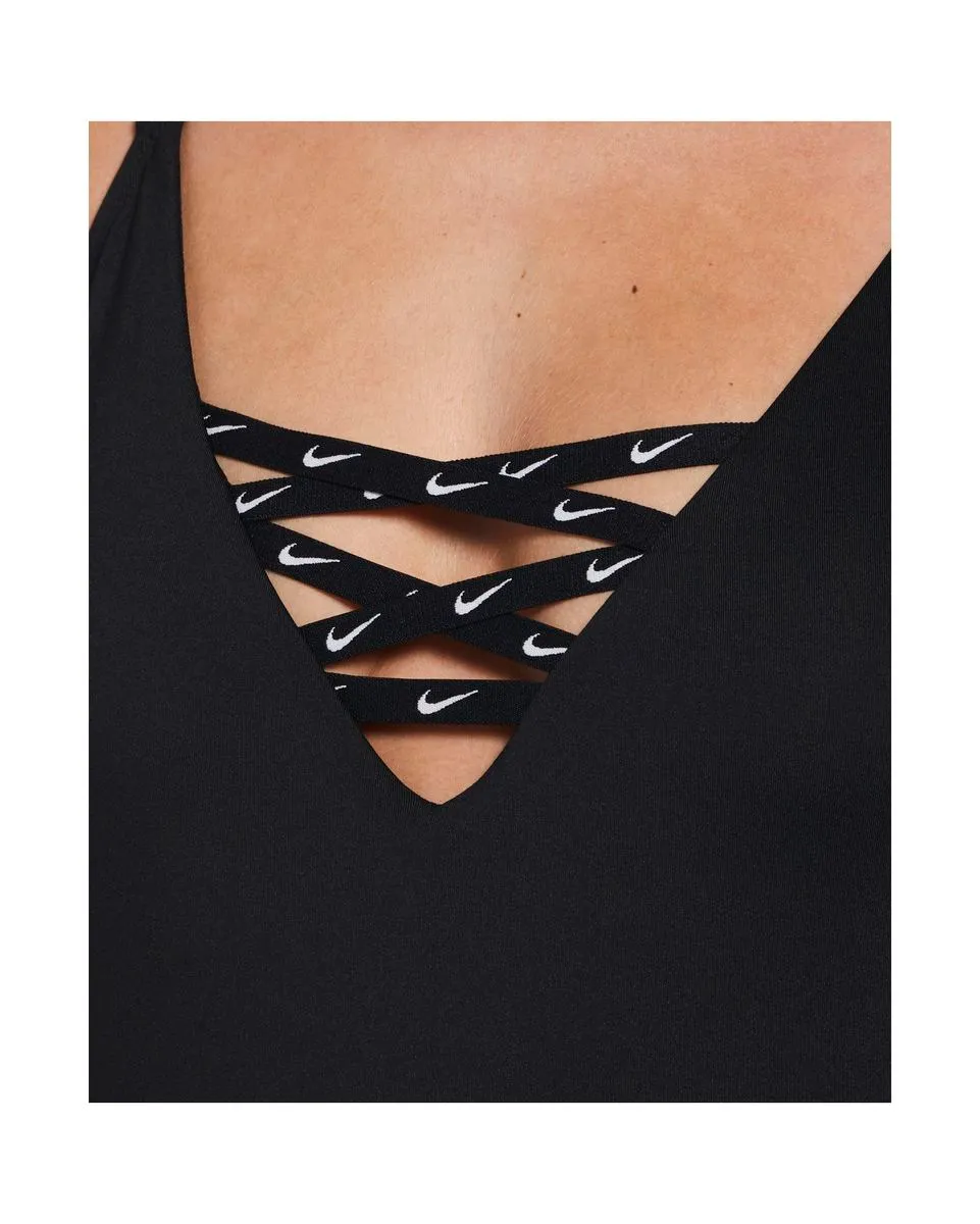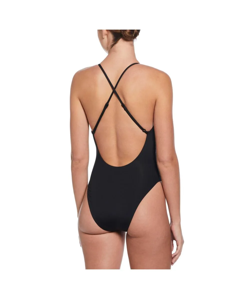 Maillot de bain une pièce, avec le dos croisé réglable à logo Swoosh, coupe ajustable. Les bonnets sont amovibles et sèchent rapidement. Dos ouvert et la coupe échancrée au niveau des fesses et des cuisses.