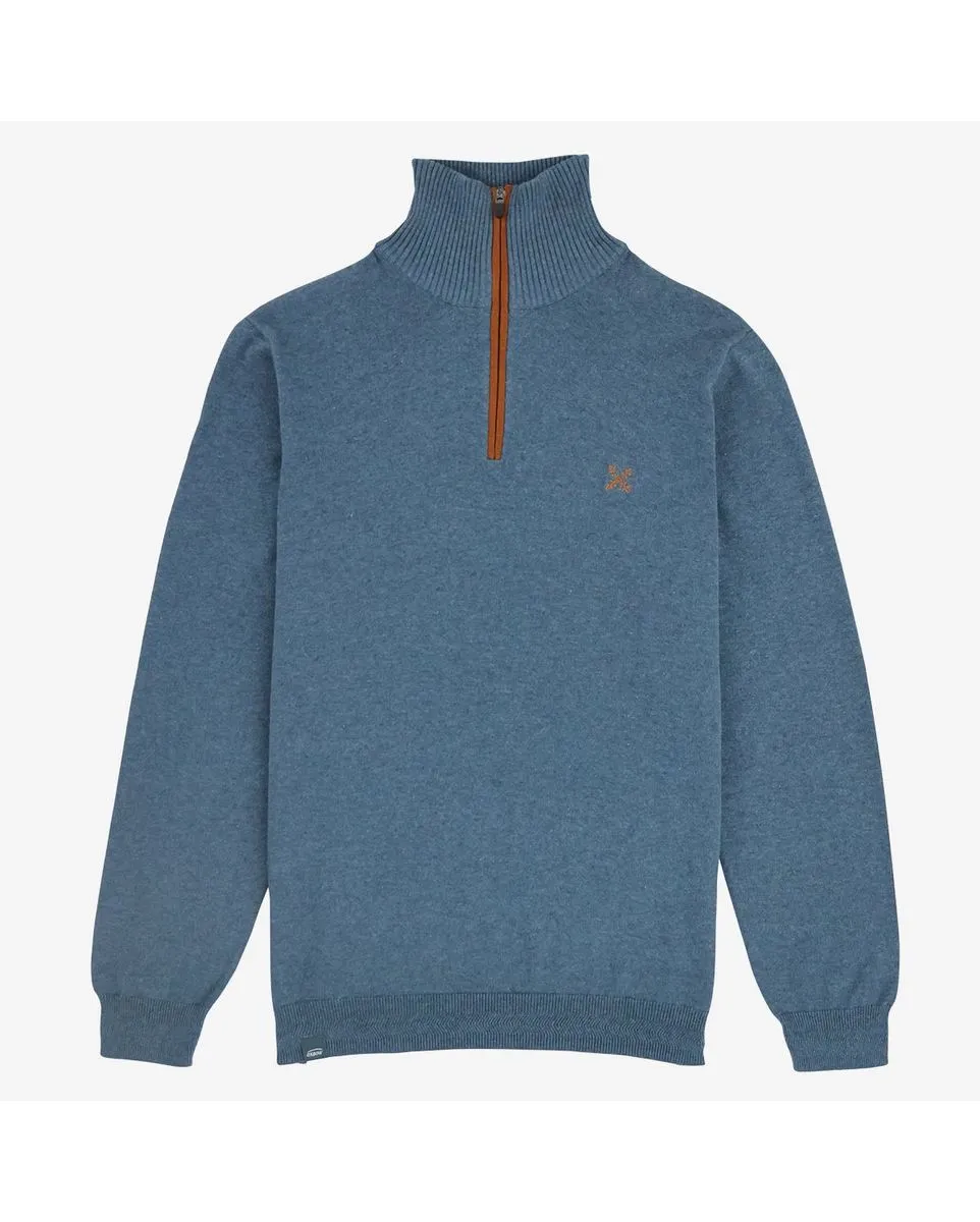 Pull zip manches longues Homme COL MONTANT DEMI ZIP Bleu OXBOW - Ref P2PENZI-XMUND