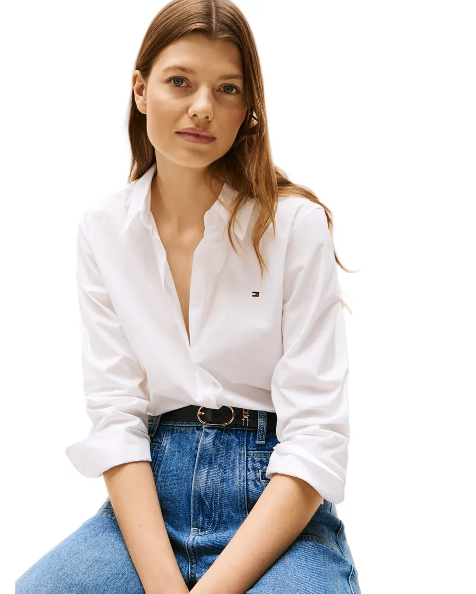 Chemisier Femme COTTON STRETCH REGUL TH Blanc TOMMY HILFIGER - Ref WW0WW43577-03A