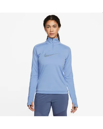 Haut zip manches longues Femme W NK DF SWOOSH HBR HZ PACER Bleu