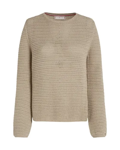 Pull col rond Femme POINTELLE CROCHET OPEN-NK LS SWT Beige